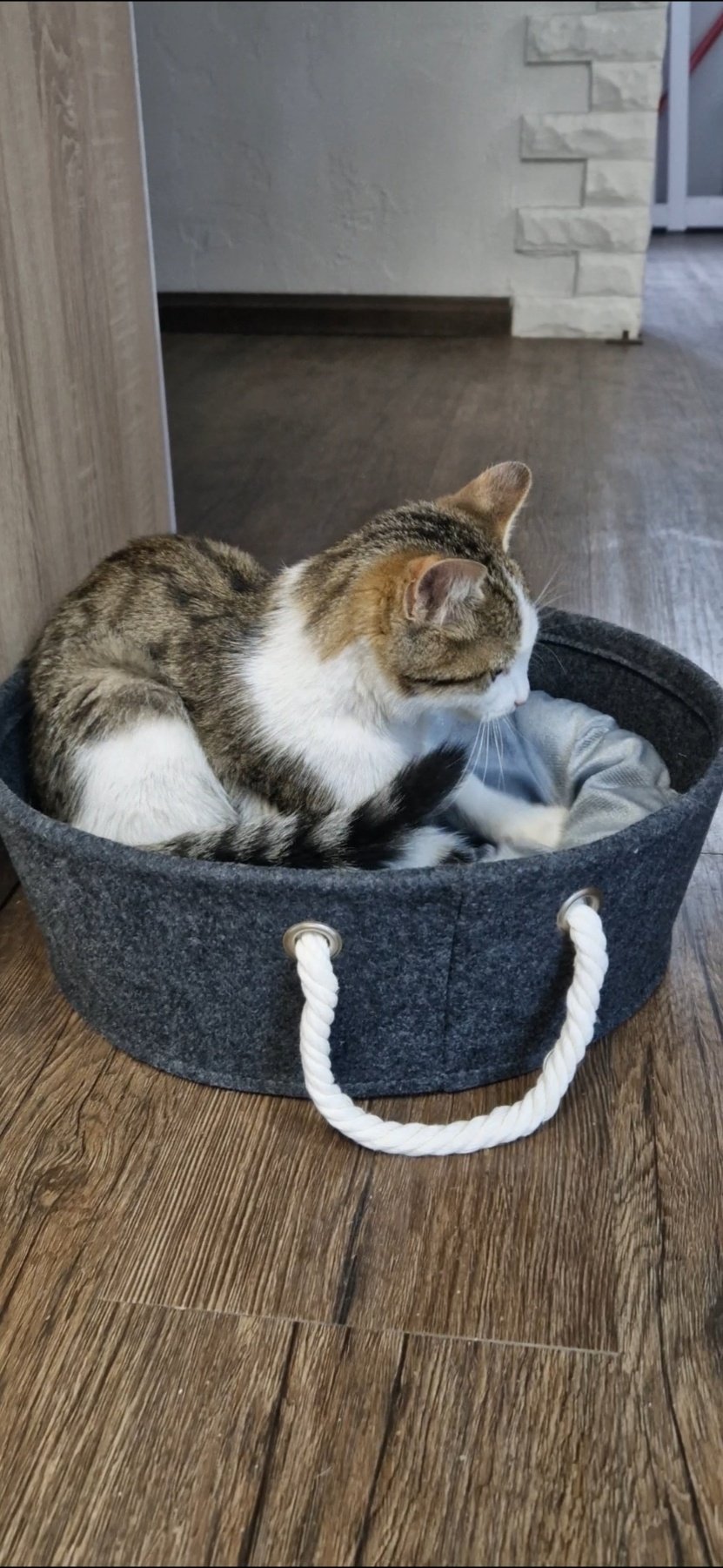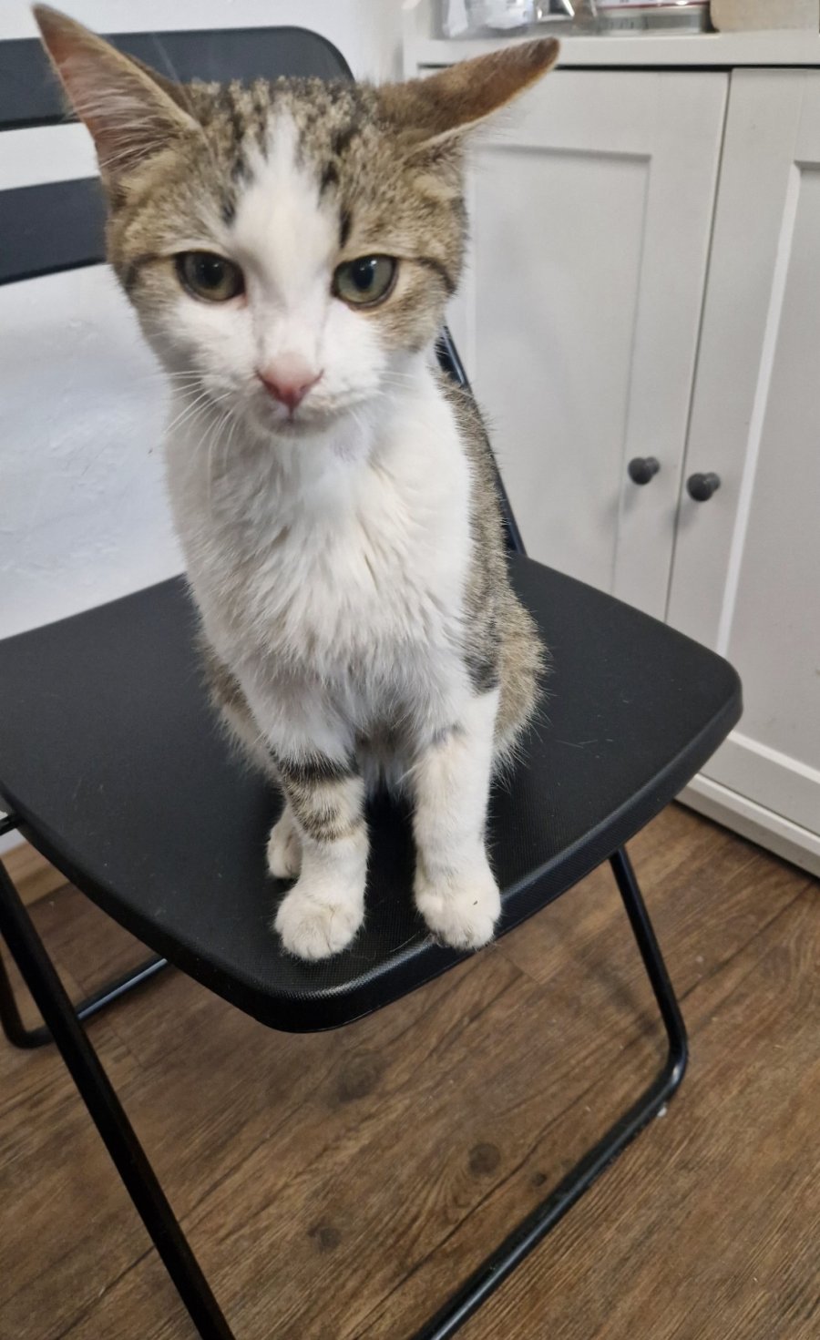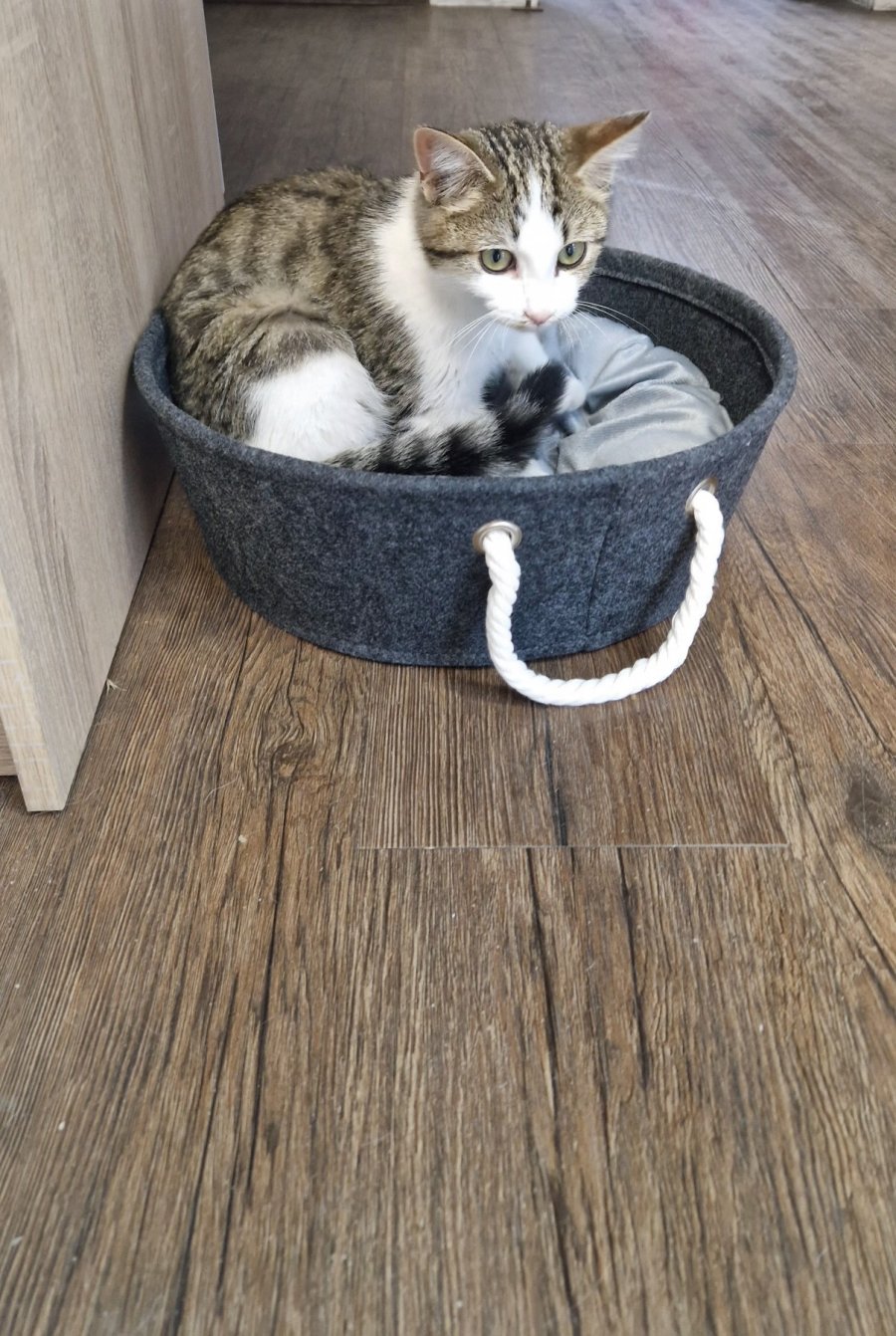 Котето е преминало ветеринарен преглед – обезпаразитено е вътрешно и външно.