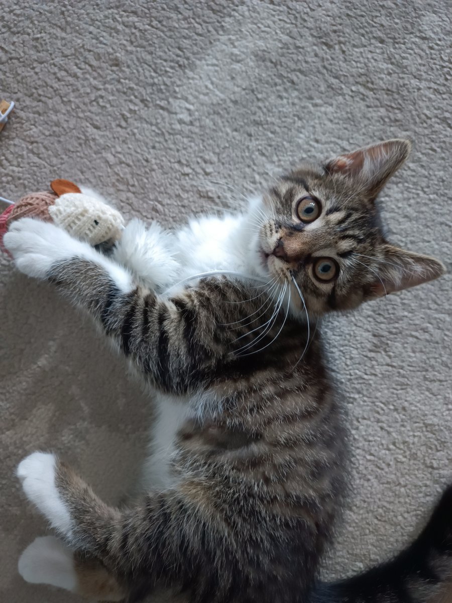 Той все още е малък, но ще се ангажираме да поемем имунизация, кастрация и ще бъде предаден с всичките му играчки и други консумативи.