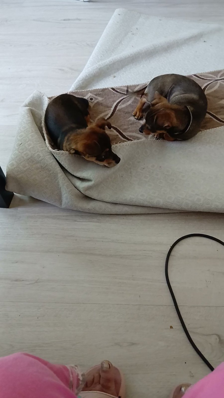 Породата е малки пинчери, не са чиста порода . Майката е пинчер, а бащата е неизвестен. За сега се отглеждат от мой познат,но мисля че е не полага нужните грижи за тях и им търся нов стопанин.