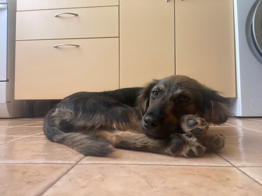 Ветеринарите смятат, че е на около 4 месеца, обезпаразитена е и скоро ще се сложи и първата ваксина.
