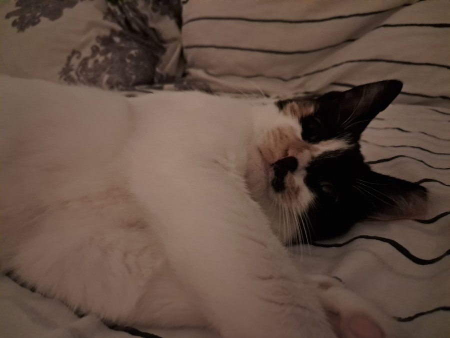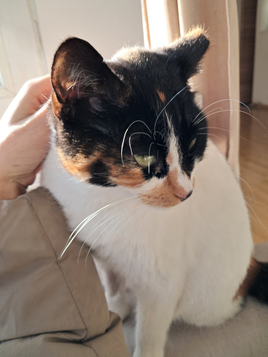 Здравейте! Това е Лейди! Тя е много добричка, спокойна и в някои случаи игрива. Домашна котка е от 7 месеца ( с навици за тоалетната, кастрирана, обезпаразитена и ваксинирана). Има лек страх от силни шумове. Ноктите и са остри, не дере и посяга но като тъпче може да ми остави рани, длъжна съм да поясня. Сравнително активна е в ранните часове на деня. Гр. СОФИЯ. Нямаме кола и за това не можем да ви я закараме. Търси се дом защото стопанката и я остави като се премести.