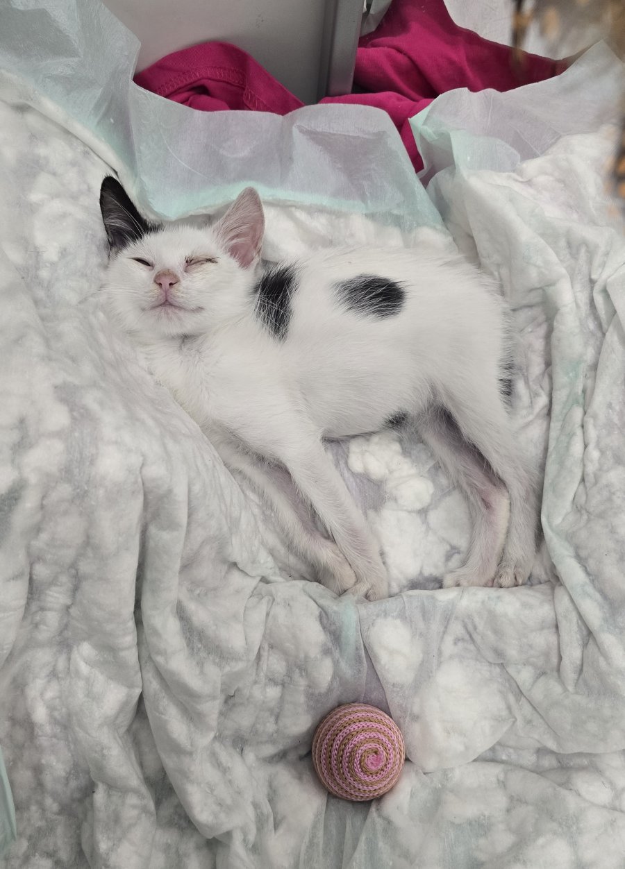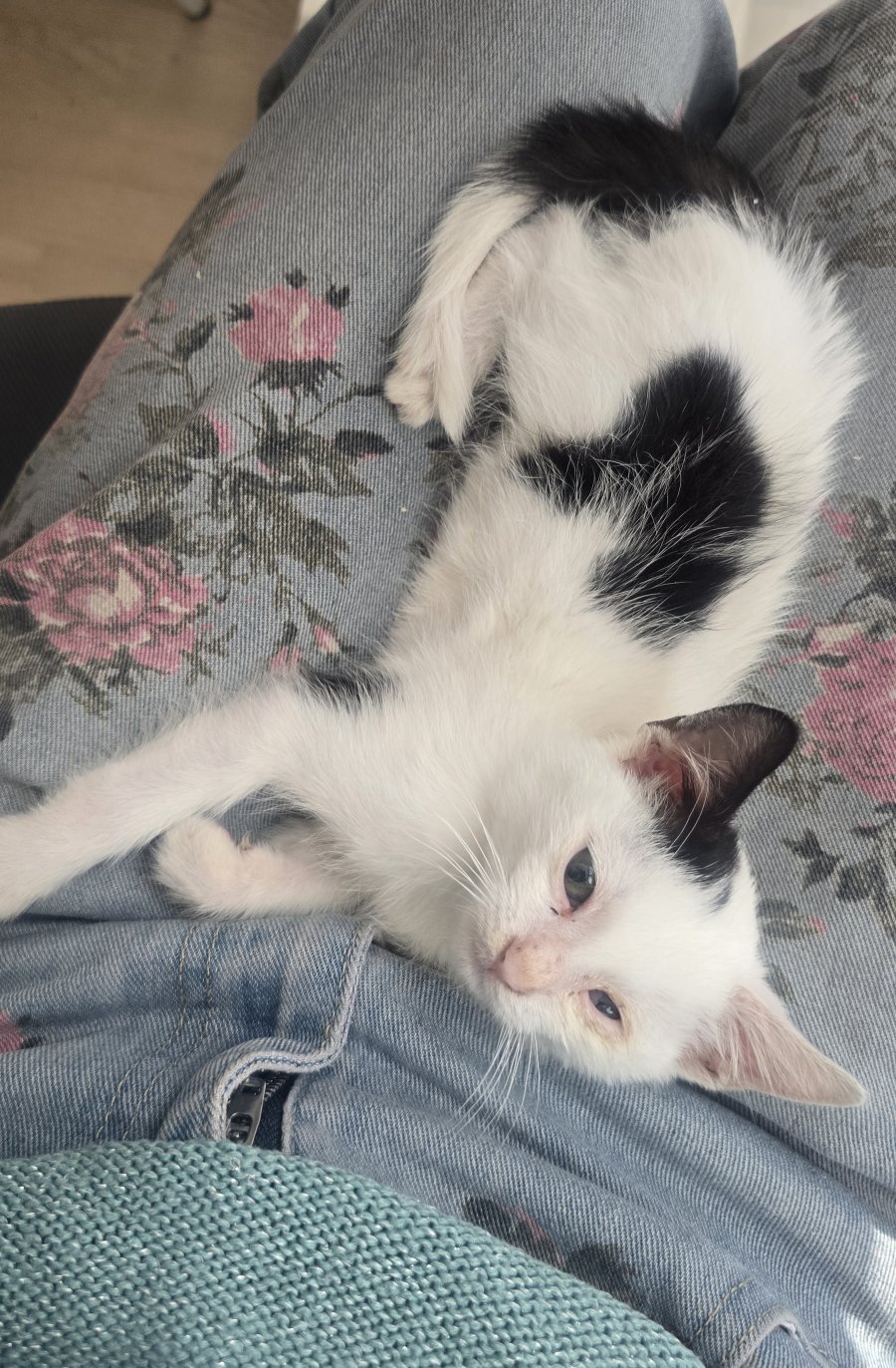 Намерих го на един паркинг, с възпалено оченце, боледувало е като е било по-мъничко. Чио вече е обезпаразитен вътрешно и външно, ваксиниран, водя го на прегледи всяка седмица и кръвните му изследвания са отлични. На около 2 месеца и половина е вече.