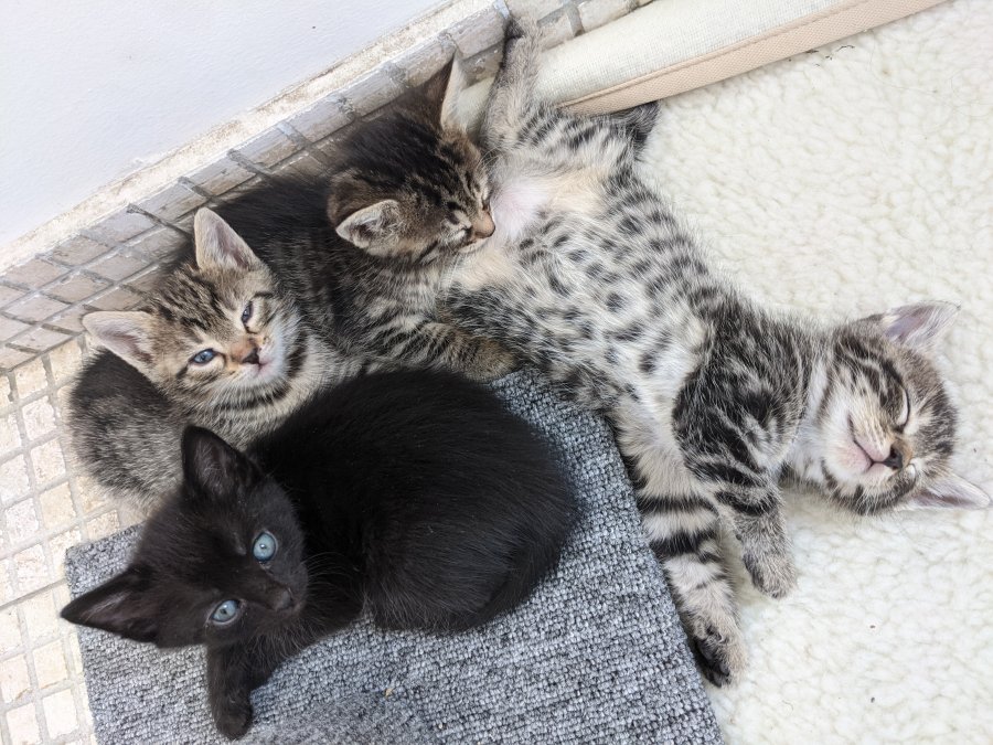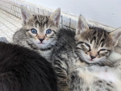 Подарявам 6 малки котенца, родени на 11 август. 3 черни и 3 тигрови, прибрахме майка им бременна от улицата. Котенцата са родени и гледани вкъщи, обезпаразитени, предстоят им ваксини след навършване на втория месец. Много общителни, игриви, с хигиенни навици, нашите 6 мъничета търсят своя постоянен дом в България или чужбина. Може да съдействаме с транспорт.